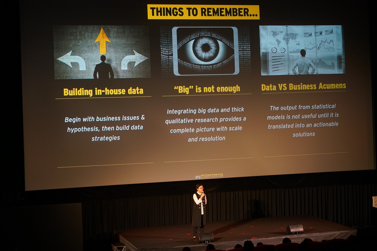 การมีข้อมูลพฤติกรรมการบริโภคของลูกค้าถือได้ว่าเป็นขุมสมบัติที่ประเมินค่าไม่ได้ แต่ในยุคที่พฤติกรรมและกระแสเปลี่ยนแปลงได้อย่างรวดเร็ว In-House data จึงเป็นข้อมูลพฤติกรรมผู้บริโภคปัจจุบันที่สามารถนำมาใช้ในการตลาดปัจจุบันได้ แต่ทว่าเพื่อที่จะขยายตลาดให้กว้างขึ้นต้องผสมผสานกับข้อมูลภายนอกด้วยเพื่อขยายฐานผู้บริโภคออกไป ต่อยอดธุรกิจอย่างมีประสิทธิภาพ และที่สำคัญกว่าการมี data ที่ครบถ้วน คือ การมีข้อมูลเชิงเหตุผล เพื่อเข้าใจถึงที่มาที่ไปของ พฤติกรรมต่างๆ ที่เกิดขึ้นตามที่เห็นจาก data ซึ่งทาง IPG Mediabrands มีการ partner ในเรื่องของ data เพื่อสร้างความครอบคลุม และมีทีมงานวิจัยเพื่อสร้างความเช้าใจเชิงลึกกับ data ต่างๆเหล่านั้น ซึ่งคุณกนกกาญจน์ได้ฝากแนวทางไว้ 3 ส่วนคือ (1) ต้องมีเป้าหมายหรือสมมุติฐานที่ชัดเจนในการสร้างประโยชน์จากข้อมูล (2) ต้องมีการประสาน data ทั้งความครอบคลุมและความเข้าใจในพฤติกรรมอย่างแท้จริง และ (3) ต้องมีนักกลยุทธ์ที่เชี่ยวชาญอย่างแท้จริงในการแปลงสารจาก data เป็น actionable insight และ actionable solutions ได้