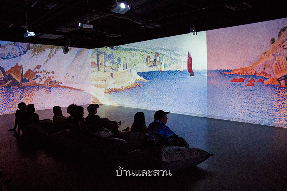 บรรยากาศในห้อง Multimedia Room ห้องที่สอง (จาก Introduction Room เลี้ยวขวา) ห้องขนาดเล็กที่มีเบาะ Beanbag ให้นอนชมงานศิลปะได้แบบชิลๆ