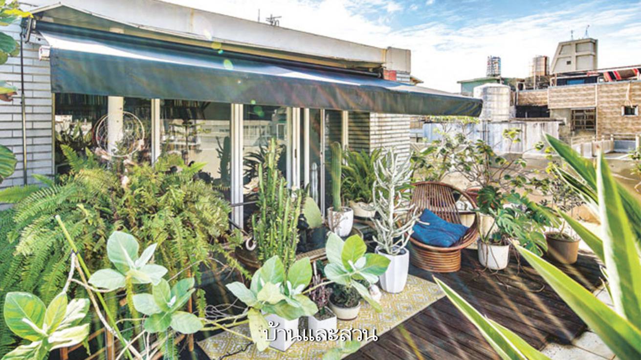 ผมมีโอกาสได้ไปเยือนบ้านของคุณวาน เฉิน ผู้อำนวยการฝ่ายศิลป์ด้านการสร้างแบรนด์ชายหนุ่มผู้นี้เลือกสร้างบ้านชั้นเดียวหลังเล็กบนชั้นดาดฟ้าของอาคารห้องเช่า รอบๆ ยังรายล้อมด้วย สวนไม้กระถาง ขนาดกะทัดรัดเพื่อใช้สำหรับพักผ่อนหย่อนใจ โดยส่วนใหญ่เป็นไม้อวบน้ำจำพวกปรง พญาไร้ใบ อากาเว่ สลัดได และ ว่านงาช้าง ซึ่งมีรูปทรงเรียบง่าย รวมถึงมีความทนทานและดูแลง่าย ร่วมด้วยของตกแต่งหลากหลายรูปแบบที่สามารถปรับเปลี่ยนการจัดวางได้เรื่อยๆ นอกจากนี้ยังมีมุมนั่งเล่นสำหรับอ่านหนังสือ ทำสมาธิ อาบแดด บางครั้งก็ใช้จัดงานเลี้ยงสังสรรค์กับเพื่อนและฉายภาพยนตร์ในตอนกลางคืน