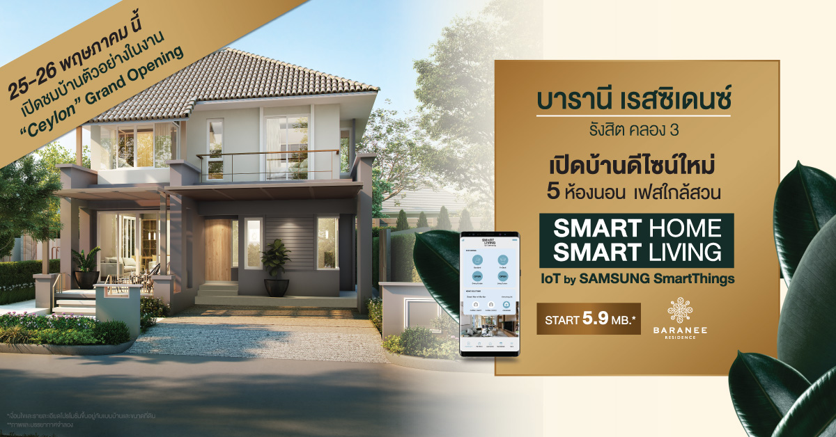 “Ceylon” แบบบ้านพร้อมฟังก์ชัน “Smart Living” โครงการบารานี เรสซิเดนซ์ รังสิต คลอง 3