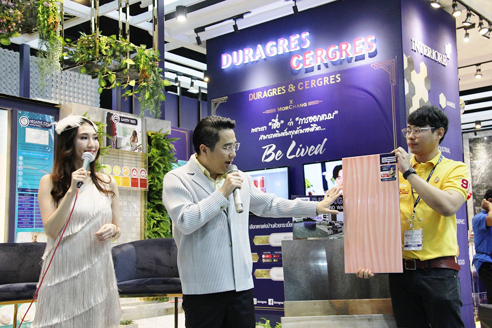 คุณปวีณา เหล่าวิวัฒน์วงศ์ ประธานคณะกรรมการบริหาร บริษัท สหโมเสคอุตสาหกรรม จำกัด (มหาชน) หรือ UMI GROUP กลุ่มบริษัทผู้ผลิตและจัดจำหน่ายกระเบื้องชั้นนำของประเทศไทยภายใต้แบรนด์ ดูราเกรสและเซอเกรส นำทัพคณะผู้บริหารและพนักงานร่วมจัดแสดงนวัตกรรมใหม่ล่าสุดและเทรนด์กระเบื้องปี 2019 ”ART DECO” ในงานสถาปนิก’ 62 งานแสดงเทคโนโลยีสถาปัตยกรรมและวัสดุก่อสร้างที่ใหญ่ที่สุดในอาเซียน พร้อมจัดกิจกรรมพิเศษภายในงาน อาทิ มินิคอนเสิร์ตดนตรีแจ๊ซจากนักร้องสาว “ฟางข้าว The Voice Season 2” และแซ็กโซโฟนโดย “ดิสโก้ ญาณเศรษฐ์” พร้อมเชิญอาจารย์ช้าง ทศพร ศรีตุลา นักโหราศาสตร์และศาสตร์ฮวงจุ้ยชื่อดัง เปิดตัวกระเบื้องเสริมฮวงจุ้ย “DURAGRES & Cergres x MorChang…Be Lived” และร่วมพูดคุยแนะนำเทคนิค “ตกแต่งบ้านให้สวย รวย สุข ด้วยกระเบื้องเสริมฮวงจุ้ยจากดูราเกรสและเซอเกรส” พร้อมแจกรางวัลแพ็กเกจกระเบื้องเสริมฮวงจุ้ยดูราเกรสและเซอเกรส มูลค่า 10,000 บาท จำนวน 2 รางวัล ให้แก่ผู้โชคดีที่ลงทะเบียนที่บูธ ณ ชาเลนเจอร์ฮอลล์ 1 – 3 อิมแพ็ค เมืองทองธานี