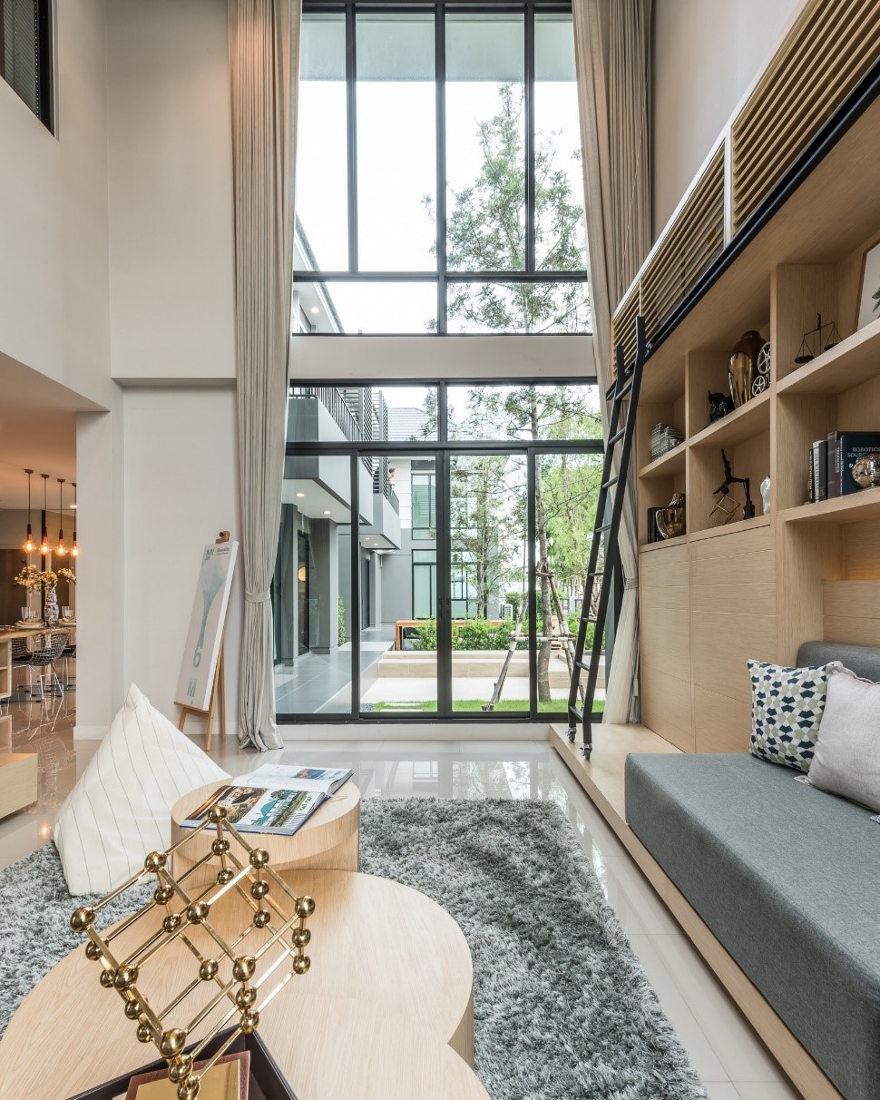 ด้วยการวาง Lay out บ้านให้เป็นรูปตัว “ L” ที่โครงการแอริ พระราม5 – ราชพฤกษ์ โดยปรับพื้นที่สวนมาไว้ภายในส่วนหลังของบ้าน ซึ่งติดกับห้องรับประทานอาหาร หรือห้องนั่งเล่นแทน จึงมีความเป็นส่วนตัวมากขึ้นกว่าสวนหน้าบ้านแบบเดิม ๆ แถมมีวิวสวยจากสวนให้มองเห็นผ่านกระจกบานสูงจากเพดานจรดพื้น ให้สัมผัสธรรมชาติได้เต็มตา เต็มอารมณ์