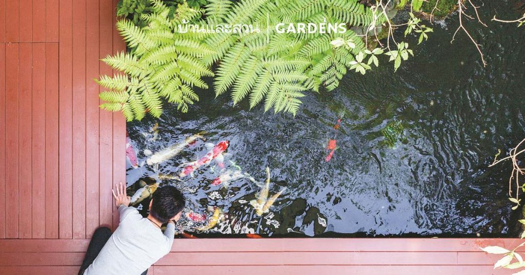 สวนทรอปิคัลของคนรักปลาคาร์ป ที่มีความสุขทั้งคนทั้งปลา
