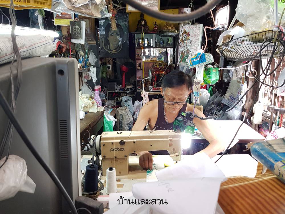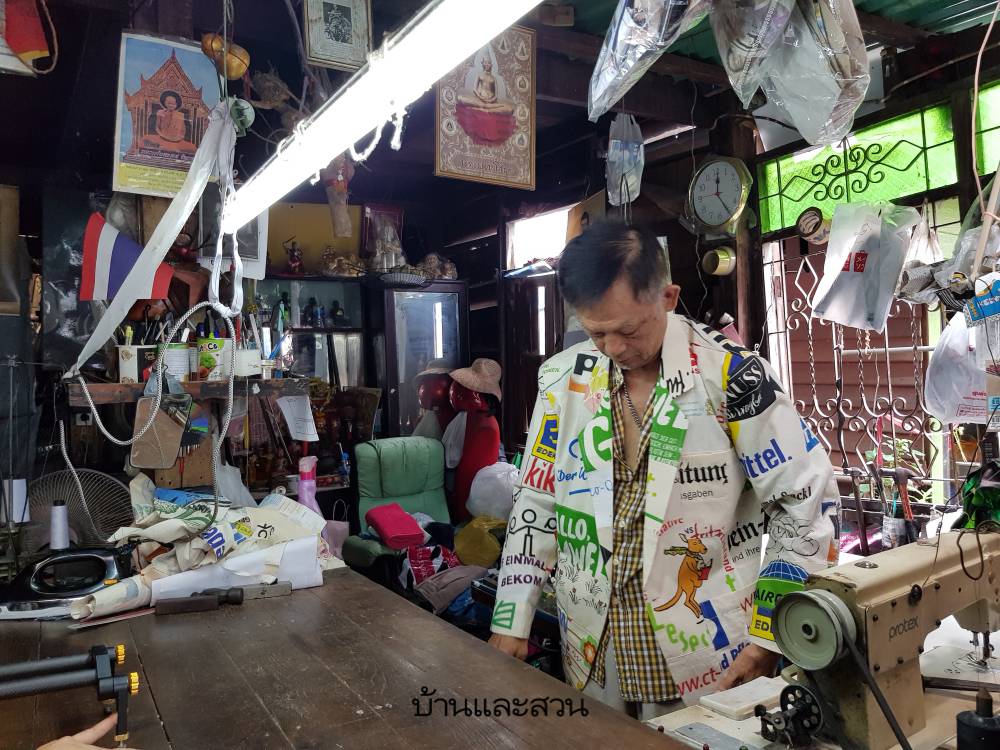 “ความโชคดีอีกอย่างของผมคือการมีช่างรู้ใจอย่างลุงแก้ว (เจริญศักดิ์ ภมรวรานนท์) สมัยก่อนบ้านผมอยู่ติดกับบ้านแกในชุมชนตึกแดง บางซื่อ จะว่าไปก็สลัมดีๆนี่เองครับ ผมไม่อายนะที่จะบอกว่าโรงงานผลิตเสื้อผ้าของผมอยู่ในสลัม ตอนที่ผมเริ่มทำงานเสื้อผ้า ก็ไม่รู้จะหาช่างที่ไหน ด้วยต้นทุนต่ำอย่างเรา ก็คิดว่าลุงแก้วน่าจะตอบโจทย์เราได้ เพราะแกมีประสบการณ์ตัดเย็บเสื้อผ้ามานานตั้งแต่สมัยวัยรุ่น ที่บ้านแกทำอาชีพนี้กันทั้งบ้านเลย ทุกครั้งที่แกตัดเย็บเสื้อผ้าตามแบบที่ผมสั่ง แกจะต้องนำมาทดลองสวมดูก่อนเสมอเพื่อตรวจสอบความเรียบร้อยและความสมบูรณ์ของงาน