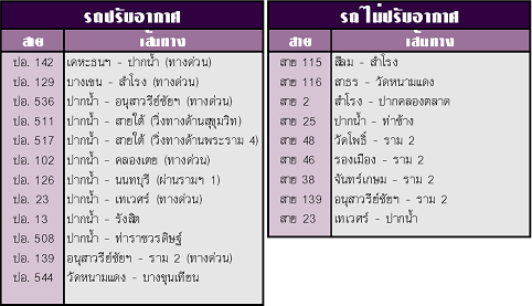 - รถตู้ทุกสายจอดที่แยกบางนา ห่างจากไบเทคประมาณ 100 เมตร โดยมีจุดปลายทางดังต่อไปนี้