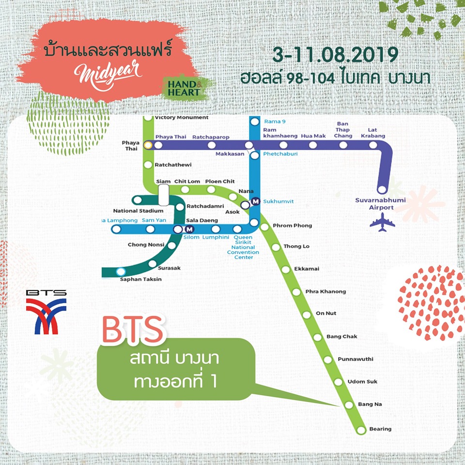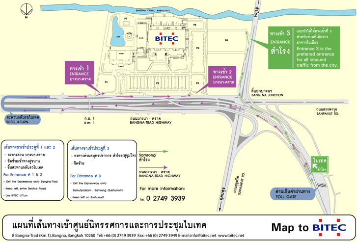 - สามารถใช้บริการรถไฟฟ้า BTS มาลงที่สถานีบางนา ใช้ทางออกที่ 1 เดินมาทางทางเชื่อม