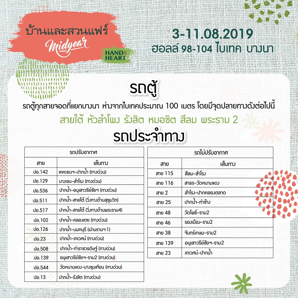 - รถตู้ทุกสายจอดที่แยกบางนา ห่างจากไบเทคประมาณ 100 เมตร โดยมีจุดปลายทางดังต่อไปนี้
