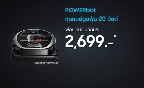 POWERbot การทำความสะอาดที่เหนือธรรมดา หุ่นยนต์ดูดฝุ่น ดูดและถูได้ในครั้งเดียว พลังแรงดูด 20 วัตต์ ทำความสะอาดได้อย่างหมดจด ผ่อนเริ่มต้นเดือนละ 2,699 บาท นาน 10 เดือน
