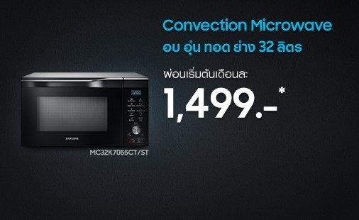 Convection Microwave เตาไมโครเวฟสำหรับการอบ อุ่น ทอด ย่าง 32 ลิตร โดยระบบทอดแบบไร้น้ำมัน เพื่อสุขภาพที่ดีกว่า ผ่อนเริ่มต้นเดือนละ 1,499 บาท นาน 10 เดือน