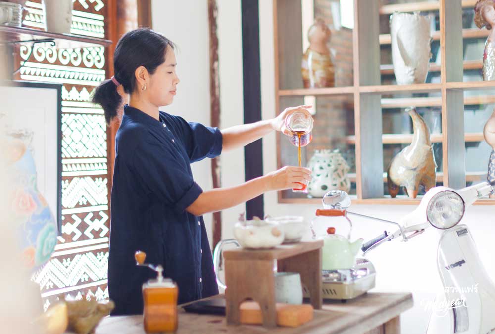 “เหตุเกิดเพราะความเบื่อเมืองหลวงสะสมมาเป็นเวลานาน อยากย้ายตัวเองไปอยู่เชียงใหม่เพราะชอบอากาศและบรรยากาศ แต่การไปอยู่ในที่ที่เราไม่คุ้นเคย ไม่รู้จักใคร ไปแล้วเราจะทำอะไร มันเป็นเรื่องยากมากสำหรับเรา บังเอิญได้ไปดื่มกาแฟดริปที่คาเฟ่แห่งหนึ่ง ซึ่งตอนนั้นกาแฟดริปยังไม่เป็นที่รู้จักมากนัก พอเราได้ลองดื่มแล้วรู้สึกได้เลยว่านี่คือรสชาติของกาแฟที่ตามหา ปกติการดื่มกาแฟตามร้านทั่วๆ ไปที่เป็นกาแฟสดรสชาติก็จะเหมือนๆ กันหมด คือเข้มและขม แต่พอลองดื่มกาแฟดริปแล้วมันมีรสชาติที่ซับซ้อนมากจนทำให้เกิดความอยากเรียนรู้และทำความรู้จักกาแฟในอีกมิติหนึ่ง ทั้งในเรื่องของการชิม ชง จนถึงขนาดไปชิมกาแฟตามร้านต่างๆ เรียนรู้บุคลิกของเมล็ดกาแฟแต่ละชนิดแต่ละสายพันธุ์ จนเริ่มหลงใหลในเสน่ห์และตกหลุมรักกาแฟแบบไม่รู้ตัว เรียนรู้อยู่ประมาณหนึ่งปี ถึงกล้าตัดสินใจเลือกเปิดร้านกาแฟที่เชียงใหม่ด้วยเหตุผลที่ว่าเราอยากทำกาแฟ อยากอยู่กับกาแฟทุกวันและอยากทำให้คนอื่นดื่มด้วยแค่นี้จริงๆ”
