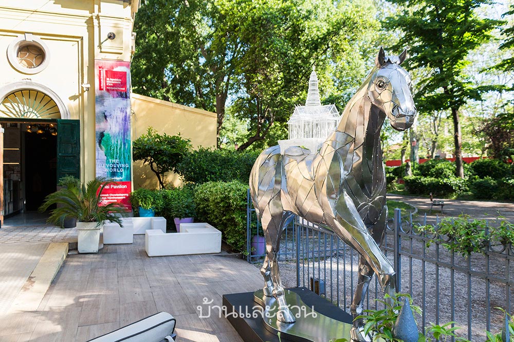 ณ บริเวณหน้าทางออก (และทางเข้า) ของ Giardini เราจะพบกับ InParadiso Gallery ซึ่งเป็นสถานที่จัดแสดงงานของ Pavilion ประเทศไทย โดยปีนี้ได้จัดนิทรรศกาศ “โลกยังคงหมุนไป” (The Revolving World) เพื่อบอก เรื่องเล่า และ ประวัติศาสตร์ชาติไทย ด้วยผลงาน ของศิลปินไทย 3 ท่านได้แก่ สมศักดิ์ เชาวน์ธาดาพงศ์ ศิลปินแห่งชาติ สาขาทัศนศิลป์ (จิตรกรรม) ประจำปี พศ 2560, ปัญญา วิจินธนสาร ศิลปินแห่งชาติสาขาทัศนศิลป์ (จิตรกรรม) ประจำปี พศ 2557 และ กฤช งามสม ศิลปินบางกอก อาร์ต เบียนนาเล่ 2018