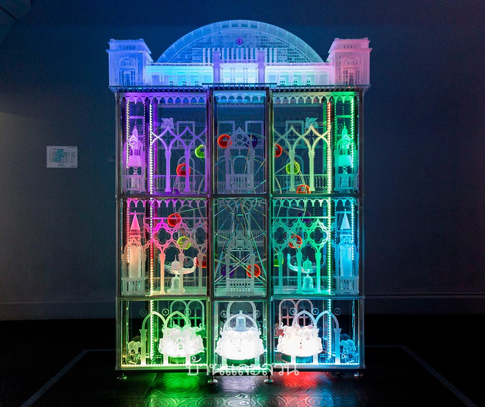 ผลงานที่ดูเหมือนจะสะดุดตาผู้ชมชาวต่างประเทศมากที่สุดใน Thai Pavilion หนีไม่พ้นผลงาน Cabinet of History, 2019 ของ กฤช งามสม ผลงานประติมากรรม Kineitc Art ประดับไฟ LED ที่มีกลไกซ่อนไกอยู่ภายในทำให้องค์ประกอบต่างๆอย่างเช่น ชิงช้าสวรรค์ หรือ ช้างหมุน สามารถขยับได้ ซึ่งเรื่องราวเบื้องหลังตู้แห่งประวัติศาสตร์นี้มีทีมาที่ไปอย่างไร กฤช ได้เล่าให้เราฟังว่า