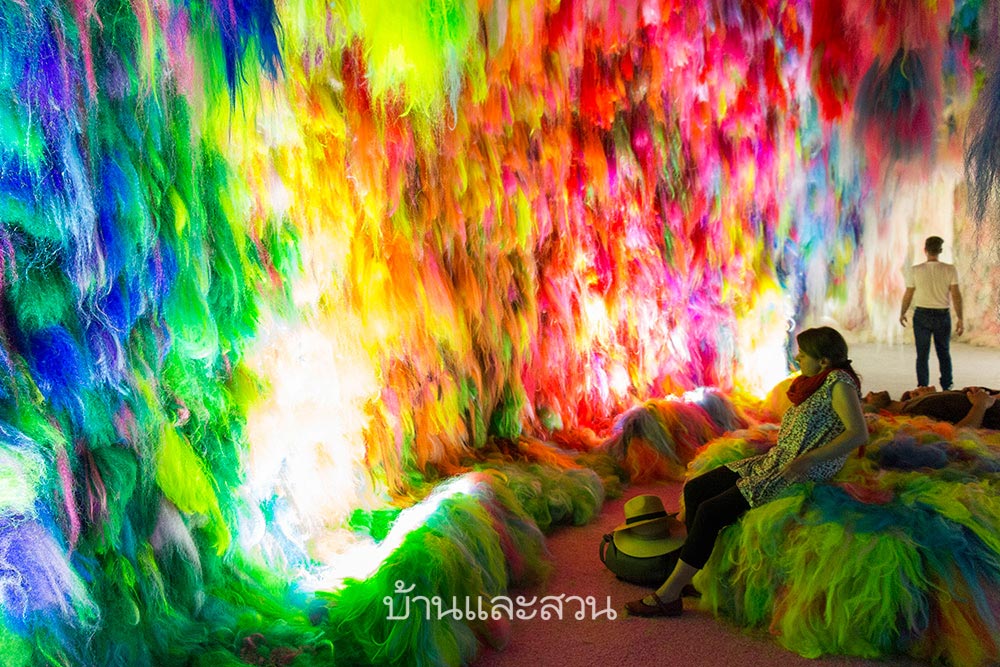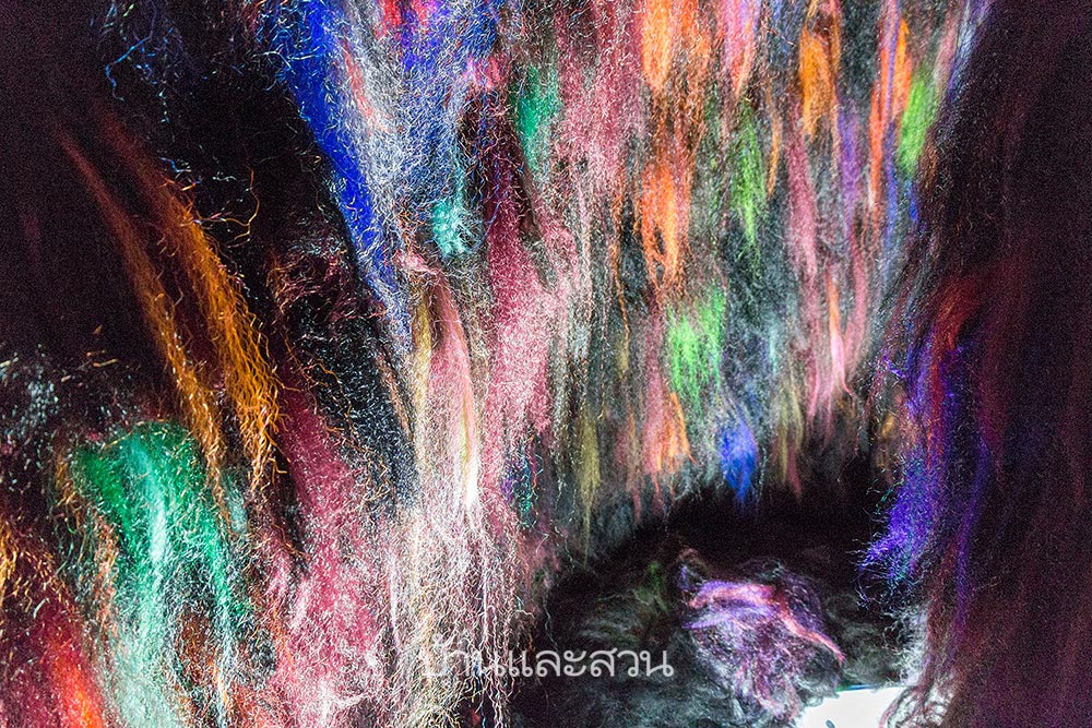 หลายคนอาจจะคิดว่าคำอธิบายของเธอนั้นฟังแล้วดูมึนงง ซึ่งไม่ต่างอะไรกับประสบการณ์ในการชมงานของเธอ ที่ชมแล้วต้องบอกว่ามึน…มึนไปด้วย ความสวยงามของสีสันราวกับว่าเธอได้สร้างพื้นที่เหนือกาลเวลาในพุงของสัตว์ประหลาดตัวนี้แล้วจริงๆ (หรือผู้ชมที่อยู่ในนั้น อาจจะเดินทางผ่านกาลเวลา วิวัฒนาการ เป็น Chromo Sapiens ไปแล้ว…ก็เป็นได้)