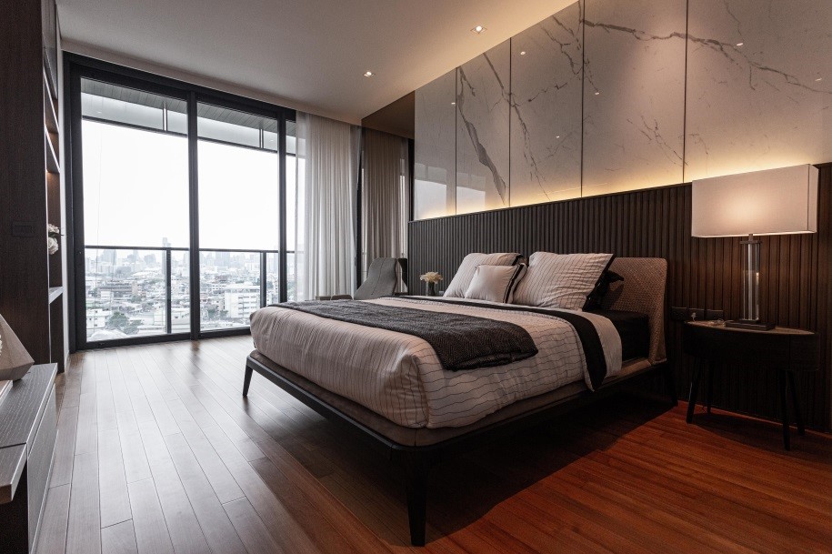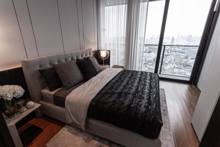 มาดูในส่วนของห้องนอนต้องบอกว่าที่นี่ได้มอบคุณภาพสูงสุดให้ผู้อยู่อาศัยด้วยพื้นห้องนอนที่ทำจากไม้สักอย่างดีในทุกห้องนอน แถมในห้องยังโชว์ความโดดเด่นด้วยหน้าต่างกระจกบายโตที่ทำให้เห็นวิวภายนอกได้อย่างชัดเจน ซึ่งห้องนอนที่โครงการทุกห้องจะเห็นวิว Riverfront ภายในห้องมีขนาดกว้างขวางกำลังพอดี สามารถวางเตียงนอนขนาดใหญ่ได้แบบสบาย ๆ รอบ ๆ เตียงนอนยังสามารถที่จะวางชุดเก้าอี้ และเตียงนอนเล็ก ๆ อีกชุดได้ก็ยังได้ เรียกว่าพื้นที่เหลือเฟือต่อการใช้มาก ๆ เลยล่ะค่ะ