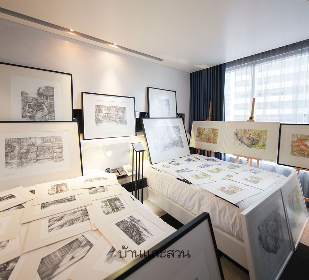 เราได้ถามศิลปินแห่งชาติท่านนี้ต่อไปว่า ความรู้สึกที่ได้มาทำงานศิลปะวาดเส้นเช่นนี้ ต่างจากที่ทำงานเคยทำงานเกี่ยวกับสถาปัตยกรรมอย่างไร