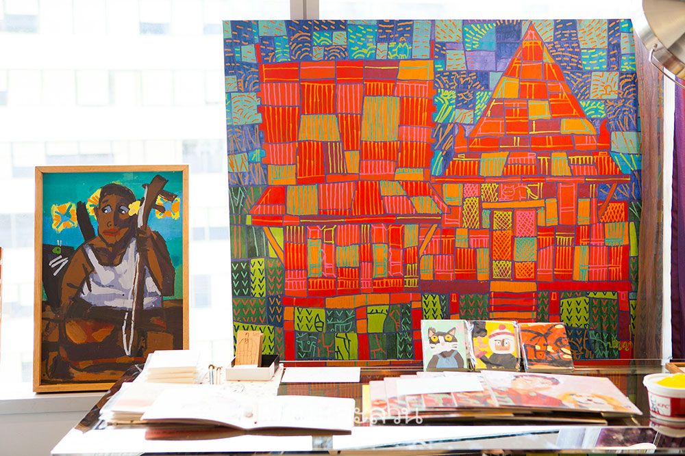 ที่ห้องนี้เราได้พบกับผลงานศิลปะสีสันสดใสจากหลากหลายศิลปิน หนึ่งในนั้นคือ เทิดธันวา คะนะมะ ลูกชายของ อ.ธีระวัฒน์ คะนะมะ 1 ใน 8 ศิลปินที่ได้ร่วมเขียนภาพประกอบพระราชนิพนธ์เรื่อง “พระมหาชนก” ซึ่งเป็นที่ทราบกันดีว่า ฝีมือจิตรกรรมไทยแบบประเพณี ของ อ.ธีระวัฒน์ นั้นอยู่ในระดับแนวหน้าของประเทศ เราไปคุยกับ เทิดธันวา กันว่าสไตล์การสร้างผลงานของเขานั้นจะเหมือน หรือ แตกต่างจากคุณพ่อ ธีระวัฒน์ อย่างไร