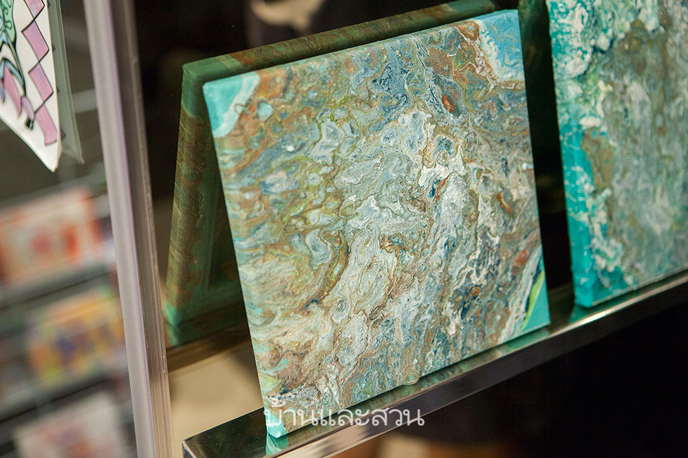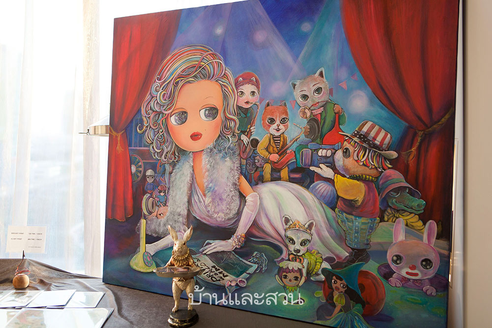 ในห้องนี้เราได้พบกับ ออย ไอรีล ไตรสารศรี ผู้ก่อตั้ง ART for CANCER by Ireal โครงการดีๆที่ใช้ศิลปะมาช่วยสร้างพลังบวกกับผู้ป่วยมะเร็ง ในงานนี้นอกจากเธอจะนำอาร์ตไอเทมมาจำหน่ายเพื่อนำเงินไปช่วยเหลือผู้ป่วยมะเร็งแล้ว เรายังได้เห็นผลงานศิลปะภาพวาดสไตล์ใหม่ของ ออย ที่ตัวเธอกำลังทดลองทำ เราไปฟังจากสาวเก่งคนนี้ว่าผลงานชุดนี้มีความคิดอยู่เบื้องหลังอย่างไร