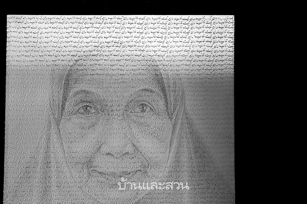 ผลงาน “ความจริง” ผลงานที่นำเสนอความหมายแฝงไว้อย่างมีขั้นเชิง เพราะเมื่อเรามอจากตรงกลาง(ภาพบน) เราจะเห็น คำว่าความจริง ล้อมรอบไปด้วยสีขาวและสีดำ แต่หากมองจากมุมขวา(ภาพข้างล่าง) เราจะทุกอย่างเป็นสีขาว เช่นกันเมื่อเรามองจากมุมซ้าย ทุกอย่างจะกลายเป็นสีดำ
