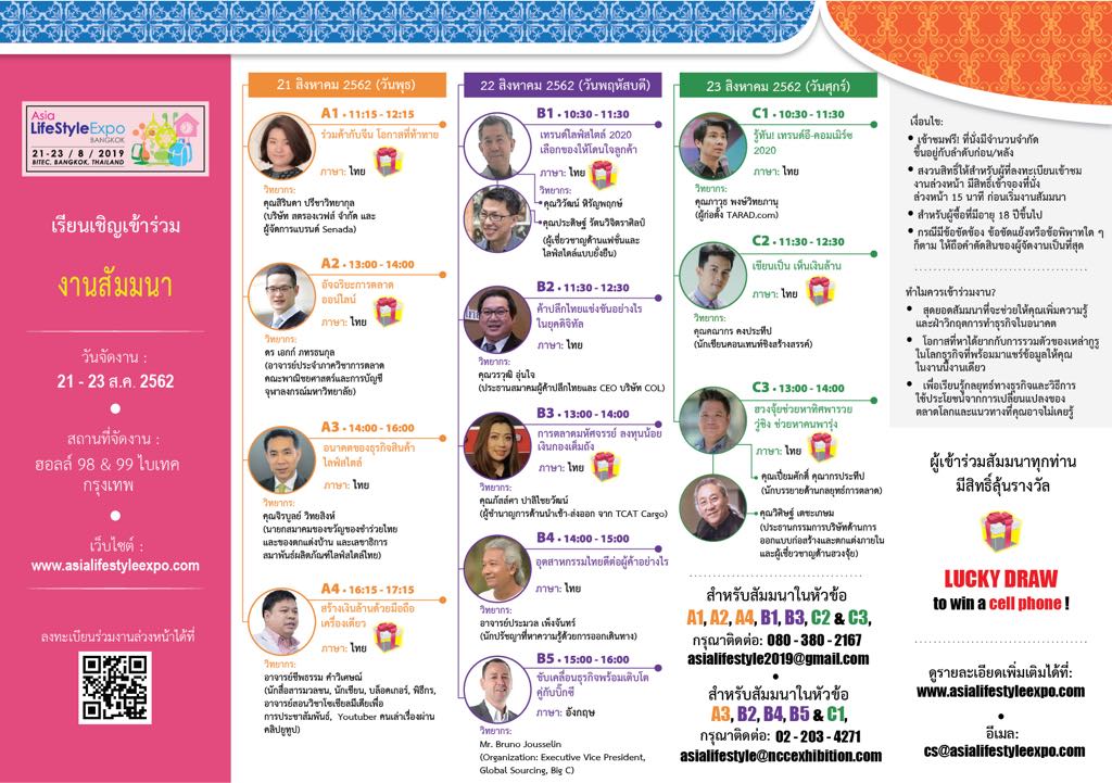สัมมนาฟรี! ไอเดียสร้าง “เงินล้าน” กับกูรูชื่อดัง ที่คุณไม่ควรพลาด ที่งาน Asia Lifestyle Expo 2019 วันที่ 21-23 สิงหาคม 2562