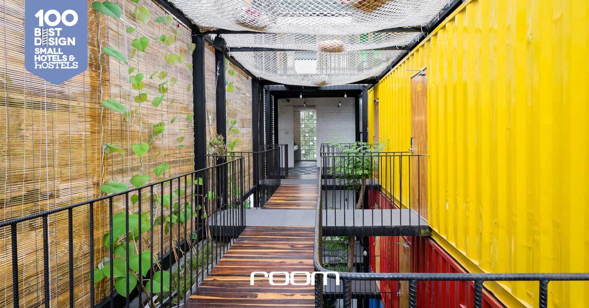 การเลือกจับคู่วัสดุ: ตู้คอนเทนเนอร์, เหล็ก, คอนกรีต, อิฐบล็อก, ไม้ไผ่ และกระเบื้องลอนโปร่งแสง