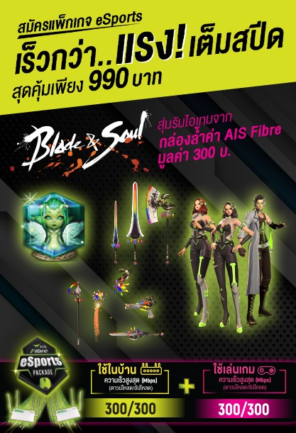 สำหรับท่านที่เป็นลูกค้า AIS Fibre eSports Package สุ่มรับไอเทมจากกล่องล้ำค่า AIS Fibre มูลค่า 300 บาท โดยมีไอเท็มหลากหลายได้แก่ กล่องชุดมิติสมมติ, หินสัตว์เลี้ยงนางฟ้าดอกไม้, กล่องอาวุธลวงตารุ้งงาม (1 หมายเลขอินเทอร์เน็ต สามารถรับไอเท็ม 1 สิทธิ์ / 1 เกมส์ / 1 เดือน)