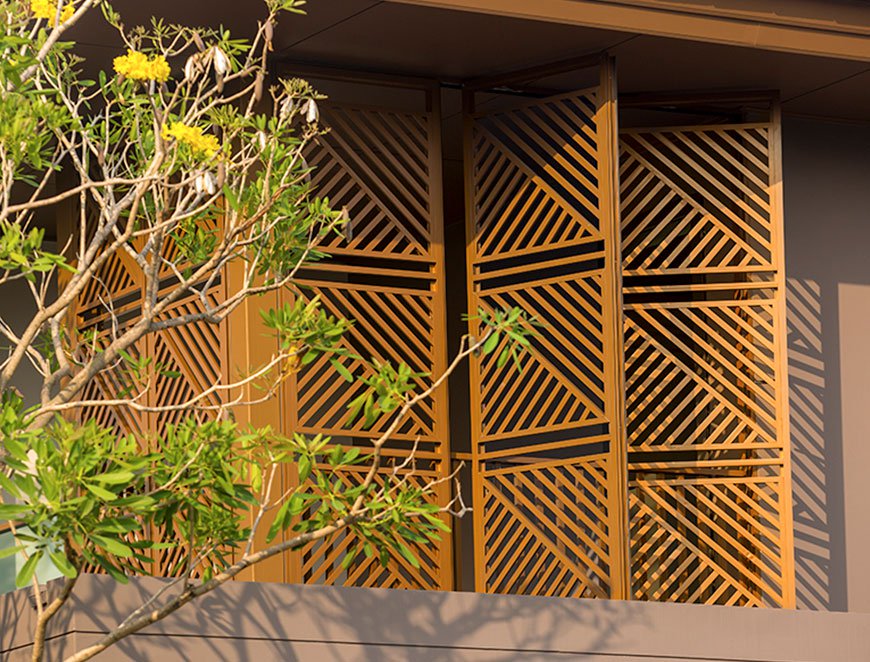 สิ่งสำคัญที่สุดของบ้านสไตล์รีสอร์ทคือ บรรยากาศที่อยู่แล้วรู้สึกสบาย ผ่อนคลาย ซึ่งเกิดขึ้นจากอากาศภายในบ้านที่ปลอดโปร่งไม่อุดอู้ อยู่แล้วเย็นสบายไม่ร้อนอบอ้าว ซึ่งการสร้างบรรยากาศให้เหมาะกับอยู่อาศัยต้องเริ่มต้นตั้งแต่การออกแบบและเลือกวัสดุ เช่นการเลือกกระจกตัดแสงเพื่อป้องกันความร้อนแต่ไม่บดบังแสงสว่างจากภายนอก ออกแบบให้บ้านมี Shading Screen ระแนงบังแดดที่ช่วยให้ความรู้สึกเป็นส่วนตัวแต่ไม่ปิดมิดเกินแสงส่องถึง เลือกใช้สีทาภายนอกที่สะท้อนความร้อนไม่ให้เข้าสู่พื้นที่ภายในอาคาร หรือชายคาอาคารที่ยื่นยาวเป็นพิเศษเพื่อป้องกันทั้งแสงแดดและสายฝนไม่ให้สาดเข้าสู่ตัวบ้าน ไม่เพียงเท่านั้น บ้านที่เย็นสบายยังต้องประกอบด้วยการหมุนเวียนอากาศภายใน ไม่ให้เป็นแหล่งสะสมของเชื้อโรค เกิดอากาศถ่ายเทที่สัมผัสได้ทันทีที่เข้าสู่พื้นที่ภายใน