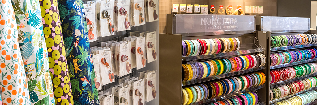 สายงานผ้าต้องไม่พลาด สองแบรนด์ใหญ่อย่าง J FABRIC ร้านนำเข้าผ้าชั้นนำจากต่างประเทศ และลายสุดพิเศษจากภาพวาดสีน้ำของ ‘ครูอั้น’ เกวลิน พิมพ์สอน นักออกแบบลายผ้า ที่สวยงาม ไม่ซ้ำใคร เรียกว่าออกคอลเลคชั่นไหนมาก็หมดเกลี้ยง และ MOMOTARA แบรนด์เทปผ้าลูกไม้ที่เป็นมากกว่าริบบิ้น มาพร้อมสตูดิโอย่อมๆให้ลองใช้ริบบิ้นทำงาน DIY ที่คุณอาจนึกไม่ถึง พร้อมผ้าลูกไม้นับร้อยแบบ