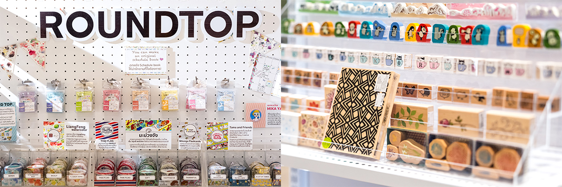 ส่วนสาว ๆ คนไหนชอบเขียน Scrapbook มีมุมสมุดบันทึก และของตกแต่งให้เลือกกว่า 1,000 ชิ้น ไม่ว่าจะเป็นเมกกิ้งเทป ROUNDTOP แบรนด์ญี่ปุ่นที่โดดเด่นด้วยลวดลายจากศิลปินชาวญี่ปุ่น อย่าง Masuda Yoshinobu ศิลปินจากโอซาก้า และเป็นครูสอนศิลปะ เน้นงานวาดด้วยดินสอ หรือพู่กันสีน้ำ จึงมีความนุ่มนวลและเอกลักษณ์เฉพาะตัว