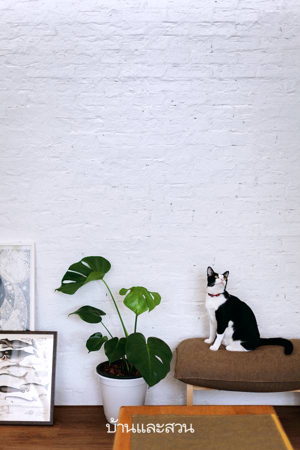 “บ้านหลังนี้เพิ่งเสร็จเลย ส่วนหน้าร้านเพิ่งเปิดใหม่ได้เดือนสองเดือนเอง” คุณเบียร์-นิกร ศรีพงศ์วรกุล และคุณตูเช่-อังสุมารินทร์ เหล่าเรืองธนา คู่รักผู้เป็นเจ้าของ บ้านมินิมัลสีขาว ตอบเป็นเสียงเดียวกัน ซึ่งเข้ากับจังหวะของแมวอวบเจ้าถิ่นชื่อว่า “ม้าลาย” หรือยศเต็มๆ ว่า “ม้า… ลาย… แครี่…” สไลด์ตัวมาต้อนรับพอดีเป๊ะ