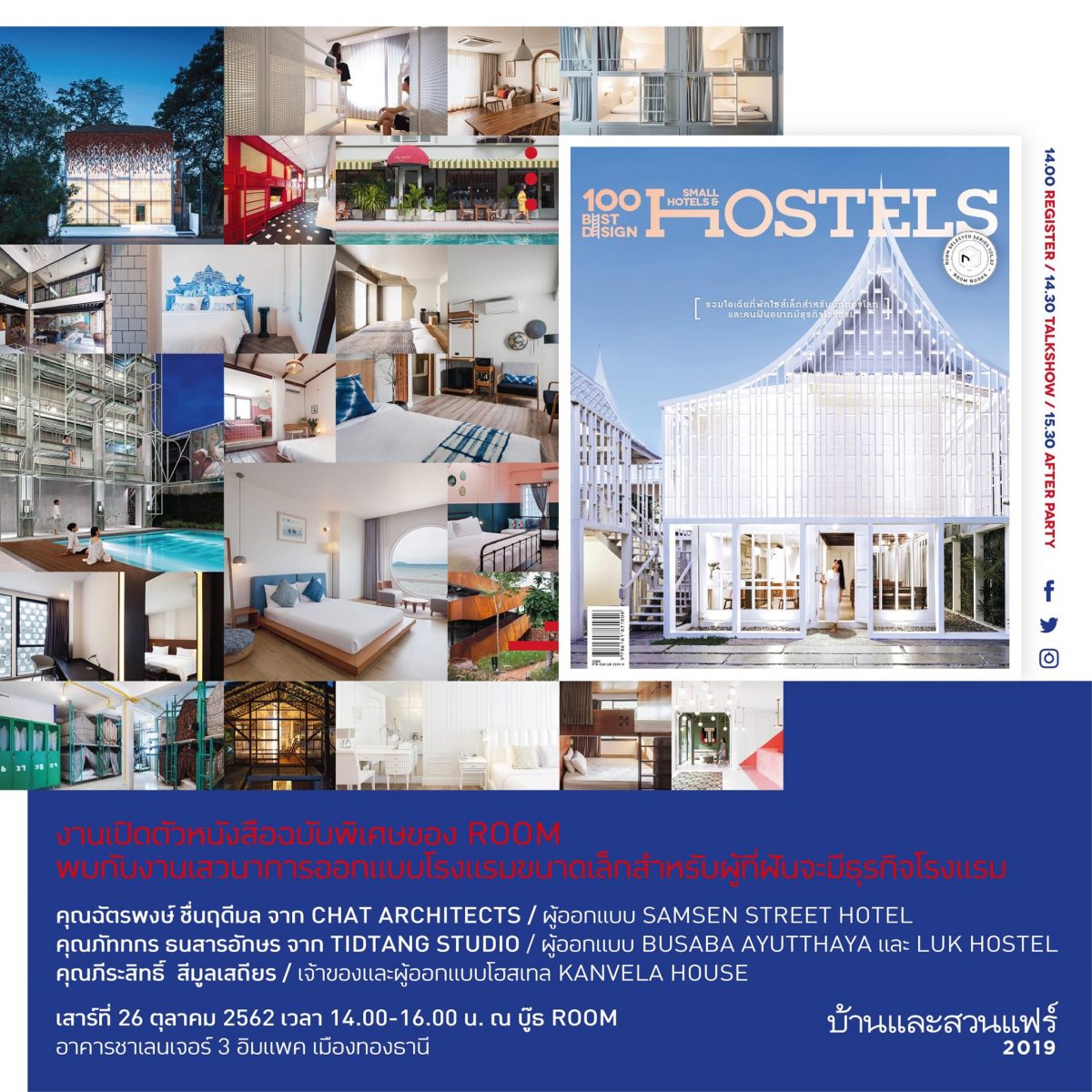 ปิดตัวหนังสือ “100 BEST DESIGN SMALL HOTELS & HOSTELS” เล่มใหม่จาก room ในวันเสาร์ที่ 26 ต.ค. 62 เวลา 14.00 น. ณ งานบ้านและสวนแฟร์ 2019 บู๊ธ room Showcase “CUBE” เสาเลขที่ 39 อาคารชาเลนเจอร์ 3