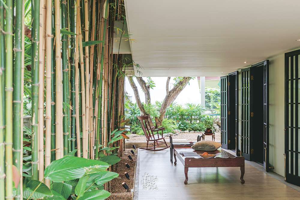 “ผมว่าบ้านใหม่ช่วยปรับพฤติกรรมของผู้อยู่อาศัยไปด้วย จากที่เคยซื้อของเยอะๆ ก็ต้องลดลง จะซื้ออะไรก็ต้องคิดให้รอบคอบก่อน เพราะเราไม่ได้ทำที่เก็บของไว้เยอะมาก แต่ก็ชอบที่บ้านดูโล่ง ปลอดโปร่ง มองไปมุมไหนก็เห็นต้นไม้ที่เราปลูกอยู่รอบๆ บ้าน มีทางเดินเชื่อมต่อแต่ละมุมได้ง่ายๆ ไม่ต้องซอกแซกเหมือนเมื่อก่อน และก็ยังมีบางอย่างที่เป็นความทรงจำที่คุ้นเคยจากบ้านเดิม ทำให้รู้สึกว่านี่เป็นบ้านของเรา”