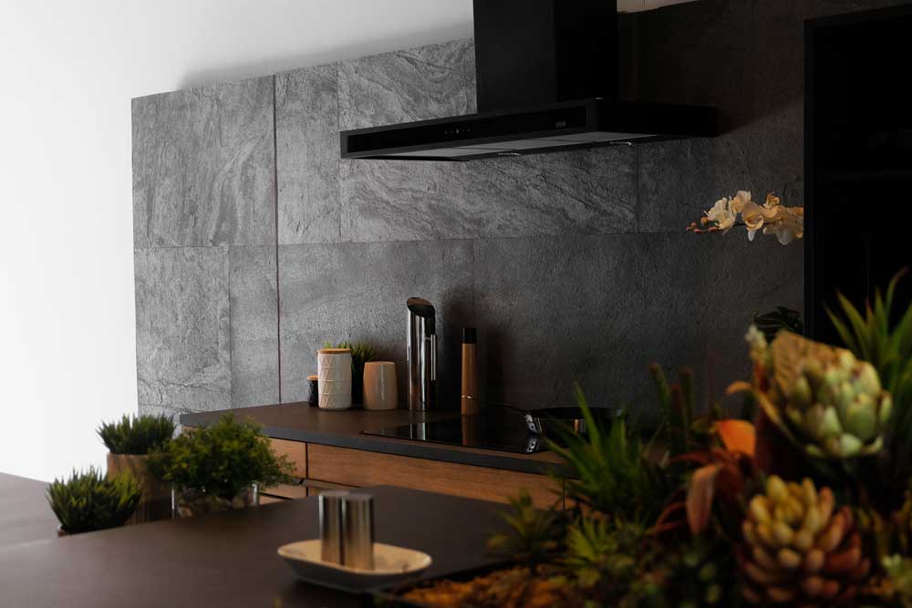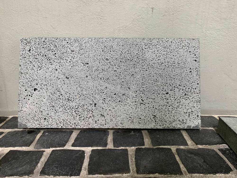 หินภูเขาไฟธรรมชาติมีสีเทาเข้ม พื้นผิวมีรูพรุนแตกต่างกันไปในแต่ละแผ่นหิน มีความแข็งแรงทนทาน รับน้ำหนักได้ดีติดตั้งได้ทั้งผนังและพื้น ทั้งภายในหรือภายนอกอาคาร