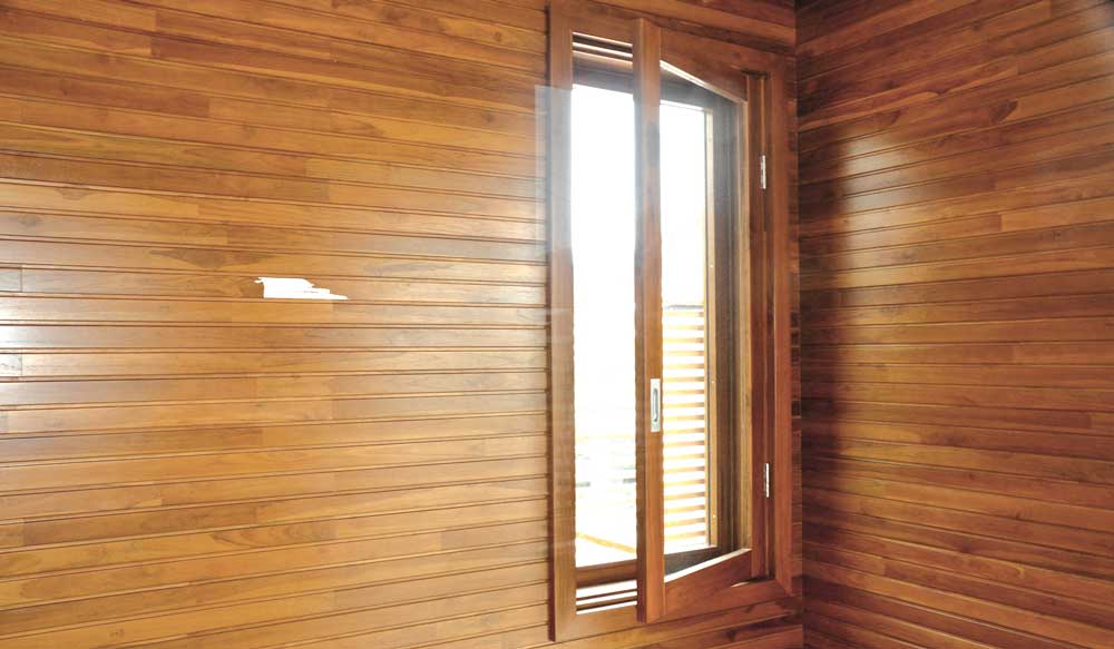 ทำจากไม้สักไทยทั้งชิ้น ออกแบบให้พร้อมติดตั้งโดยเซาะร่องเข้าลิ้น และทำสีสำเร็จ สามารถต่อเป็นผนังและฝ้าเพดาน ใช้ได้ทั้งภายนอกและภายใน จึงลดขั้นตอนการทำงานและควบคุมมาตรฐานงานได้ง่าย