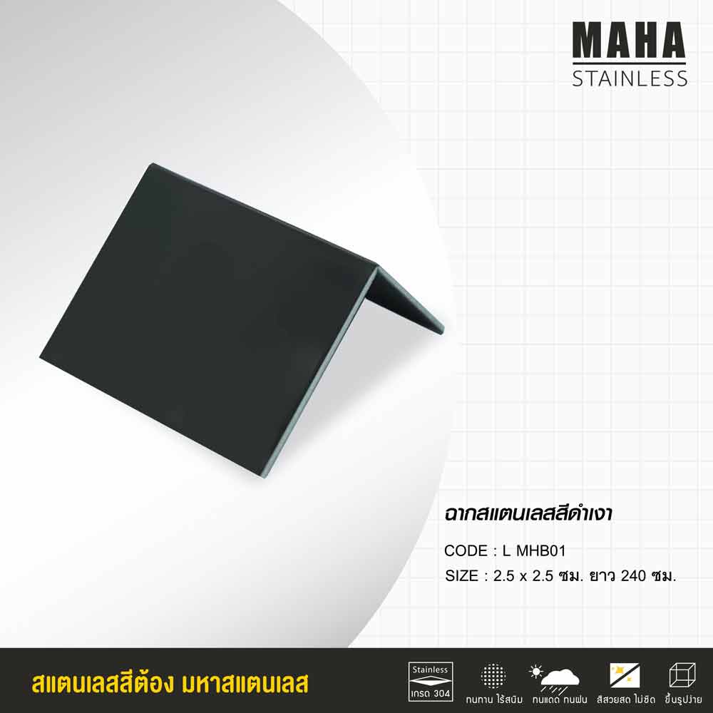 -เหล็กฉากสเตนเลสสีดำ ผิวเงา ขนาด 2.5×2.5 เซนติเมตร ยาว 2.40 เมตร ราคาเส้นละ 1,450 บาท