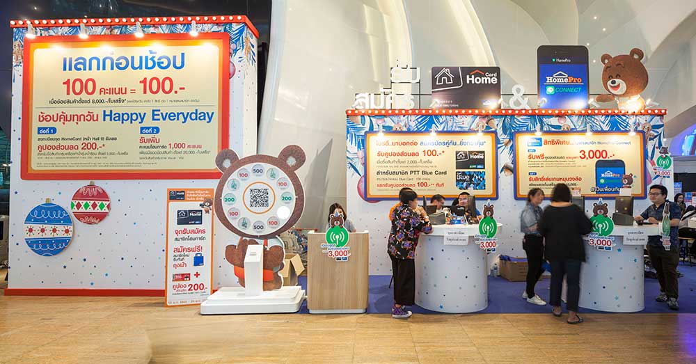 สำหรับสมาชิกบัตรโฮมการ์ด และ HomePro Line Connect สามารถลงทะเบียนล่วงหน้าผ่าน Line รับคูปองส่วนลด พร้อมรับฟรี E-Coupon 3,000 บาทสำหรับช้อปภายในงาน หรือหากใครมีใบเสร็จค่าทางด่วนลงเมืองทองธานีก็สามารถมารับคูปองเงินสด 100 บาทในวันนั้นๆเพื่อใช้แทนเงินสดได้ทันที (จำกัด 1 คน/ใบ เฉพาะวันจันทร์ – ศุกร์) และเพียงสแกน/ลงทะเบียน ผ่าน QR Code เพื่อรับคูปองส่วนลดมูลค่า 500 บาท เมื่อช้อปสินค้า 5,000 บาทขึ้นไปในงาน ทางช่องทางประชาสัมพันธ์ต่างๆ ภายในงานยังมอบบริการต่อเติมครัวพร้อมชุดครัว ราคาเดียวคุ้มค่าได้ตั้งแต่พื้นถึงหลังคา พิเศษเพียง 299,000 บาท และต่อเติมความสุขรับสิทธิพิเศษอีกมากมาย จาก Home Service Application แอปเดียวเหมือนมีช่างประจำบ้านจากโฮมโปร