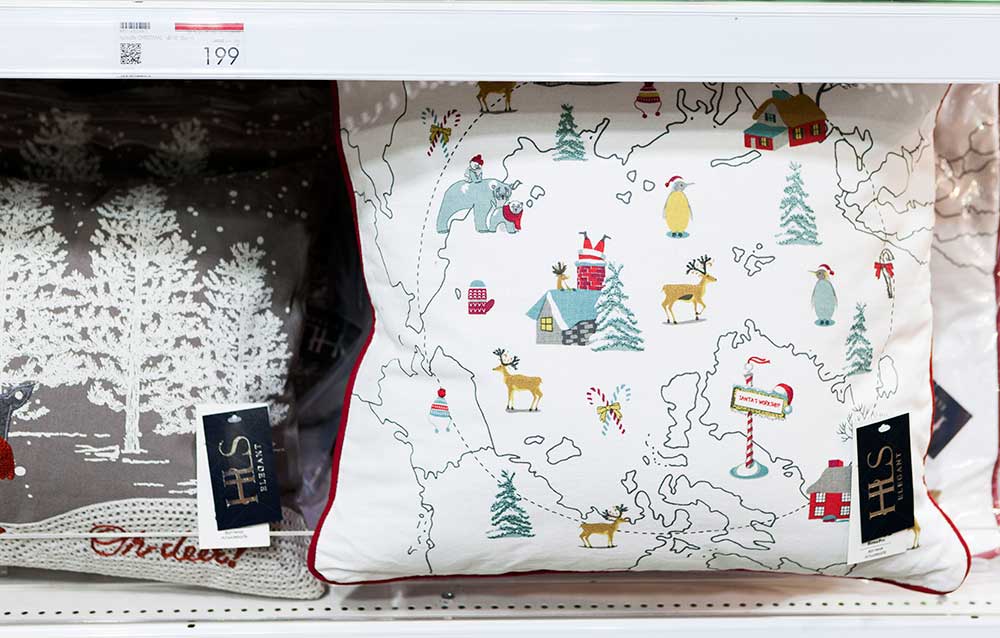 เริ่มจากหมวดสินค้าตกแต่งบ้านรับเทศกาลปีใหม่คอลเล็กชั่นล่าสุดจาก HLS มีให้เลือกทั้งหมอนอิงลวดลายสวย ของตกแต่ง และไอเทมคริสต์มาสอีกมากมายที่ดีไซน์เป็นพิเศษสร้างสีสันและบรรยากาศของเทศกาลสนุกๆ ให้เลือกไปเนรมิตบ้านหรือสถานที่ แค่เดินดูก็เพลิดเพลินจนเลือกไม่ถูก แถมสินค้าที่คัดมายังสวยทุกชิ้น หากใครกำลังมองหาของขวัญมุมนี้ก็นับว่าตอบโทย์เลยทีเดียว