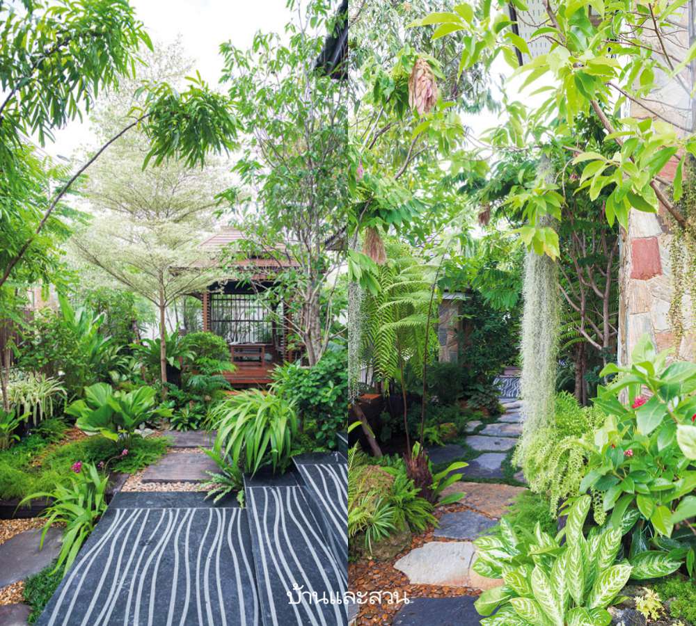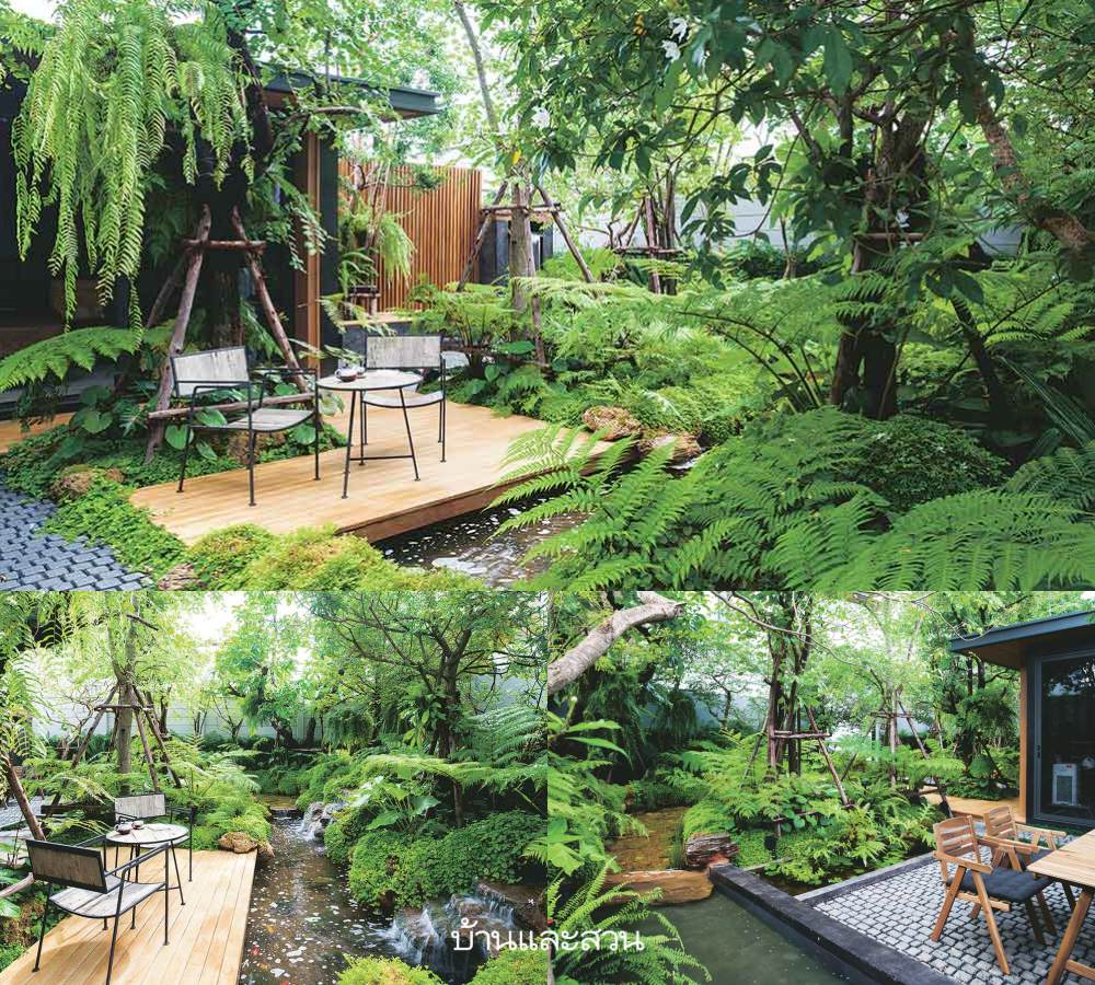 ระยะหลังมานี้ทีมงานบ้านและสวน มีโอกาสไปชมสวนสวยๆ ในหมู่บ้านจัดสรรหลายแห่ง เราพบว่าเจ้าของบ้านให้ความสำคัญกับพื้นที่สวนในบ้านเพิ่มมากขึ้น และดูเหมือนว่า สวนป่า สวนเมืองร้อน หรือสวนทรอปิคัลนั้นได้รับความนิยมมากทีเดียว คุณไห – ทินกร ศรีวัฒนะธรรมา หนึ่งในผู้เชี่ยวชาญการจัดสวนแนวนี้และมีประสบการณ์ออกแบบสวนมานานกว่า 30 ปี พาเราเดินชมสวนสวยแห่งนี้และเริ่มเล่าที่มาของสวนให้เราฟังว่า “คุณชา -ปรีชา อยู่กิจติชัย และคุณรุ่ง – รุ่งนภา อยู่กิจติชัย เจ้าของบ้านเห็นผลงานของผมจากในรายการ The Gardener ทางช่องอมรินทร์ทีวี โจทย์ก็คืออยากได้ลำธาร น้ำตก อยากเลี้ยงปลา มีศาลาที่ใช้งานได้จริง ชอบสวนป่าแต่ไม่ต้องการสวนที่ทึบมากจนเกินไป ผมเริ่มเข้ามาจัดสวนเมื่อปลายปีที่แล้ว พื้นที่เดิมก็เป็นสวนในหมู่บ้าน ปลูกต้นไม้ใหญ่ เช่น แคนา มะฮอกกานี ทองกวาวไว้ค่อนข้างเยอะ เราเลยต้องขุดล้อมย้ายตำแหน่งปลูกใหม่บ้าง ริมรั้วปลูกไทรเกาหลีเป็นแนวยาว ตรงกลางเป็นสนามหญ้า หมู่บ้านแห่งนี้ค่อนข้างเน้นเรื่องพื้นที่สีเขียว เลยปลูกต้นไม้ใหญ่ไว้ค่อนข้างมากทั้งในบ้านและนอกบ้านครับ” อ่านต่อ