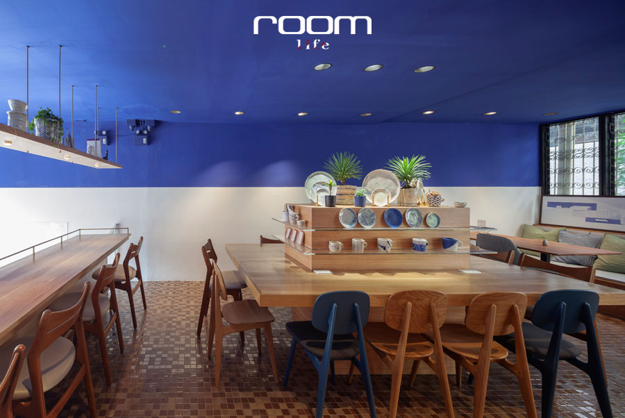 ไอเดียจากร้าน A CLAY CAFE ภายในออกแบบให้มีสไตล์อบอุ่น เน้นโทนสีน้ำเงิน Indigo ซึ่งเป็นสีหลักของแบรนด์ A Clay Ceramic ร่วมกับสีขาวและสีน้ำตาลของไม้ โดยใช้สีน้ำเงิน Indigo ทาผนัง และฝ้าเพดานเพื่อเชื่อมพื้นที่และเรื่องราวต่าง ๆ ภายในส่วนคาเฟ่ให้ต่อเนื่องกัน ตามมุมต่าง ๆ รายล้อมด้วยพาเหรดจาน ชาม และแก้วเซรามิก