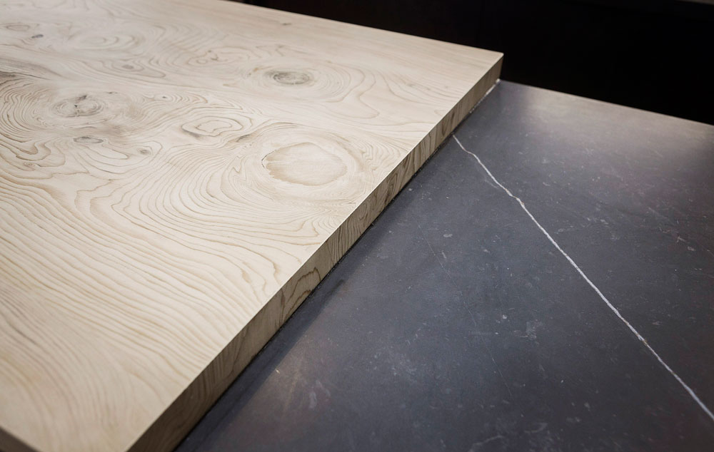 ด้วยส่วนประกอบที่เป็นวัสดุสังเคราะห์ 100% จึงไม่มีข้อจำกัดในเรื่องของขนาด ไม่มีรอยต่อ สามารถดัดโค้งได้หลายรูปทรง ผิวหินสังเคราะห์ไม่มีรูพรุน และไม่ดูดซับของเหลว จึงเป็นอีกหนึ่งวัสดุที่นิยมใช้ทำท็อปเคาน์เตอร์แพนทรี GIO เลือกใช้หินสังเคราะห์จาก Staron Samsung ที่มีคุณสมบัติเทียบเท่ากับหินสังเคราะห์ยุโรปและอเมริกาในราคาที่เป็นมิตรมากกว่า