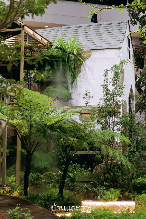 “เราสมมติให้บ้านหลังนี้สร้างอยู่บริเวณเนินเขาริมหน้าผาใกล้น้ำตกและลำธาร หลังจากที่บ้านไม่มีใครอยู่ เกิดการพังทลายของดินตามธรรมชาติ หินก็ลงมากองที่บางส่วนของบ้าน บนหลังคาบ้านเกิดเป็นน้ำตกเล็กๆ หลังจากที่ลูกหลานกลับมาอาศัยอยู่อีกครั้ง ก็สร้างอาคารใหม่ขึ้นมาให้เชื่อมต่อกับอาคารเดิม เอาของใหม่ซึ่งเป็นการทรานส์ฟอร์มมาสวมกับของเก่า ทั้งการอยู่อาศัย เรื่องของฟังก์ชันการใช้งาน รวมถึงวัสดุต่างๆ นำมามิกซ์แอนด์แมตช์กัน โดยอาศัยธรรมชาติเป็นตัวผสมผสาน เพื่อให้ตัวสถาปัตยกรรมของยุคสมัยเก่าและสมัยใหม่ผสานเข้าด้วยกันอย่างกลมกลืน เราไม่จำเป็นต้องรื้อ เราสามารถนำเทคโนโลยีสมัยใหม่มาสร้างสวนที่เป็นธรรมชาติได้โดยไม่ทำลายธรรมชาติ มีความร่มรื่น มีความสุข มีชีวิตของตัวมันเอง อันนี้คือสิ่งที่เรียกว่าทรานส์ฟอเมชั่น และเป็นโจทย์ที่เป็นที่มาของสวนโชว์ในปีนี้ครับ”