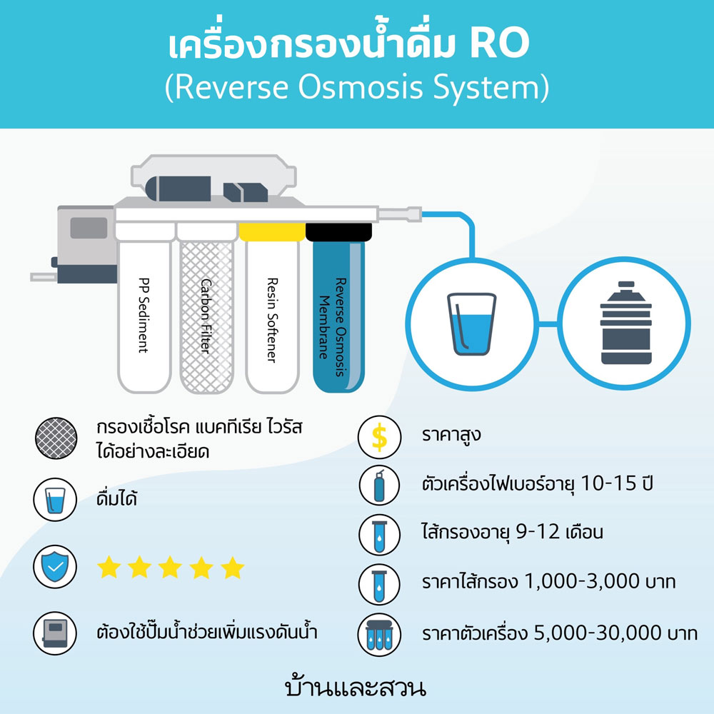 เมื่อพูดถึง เครื่องกรองน้ำ ระบบกรองน้ำ ทุกท่านอาจคุ้นเคยกับเครื่องกรองน้ำดื่มเล็ก ๆ ที่ติดตั้งอยู่ในห้องครัว แต่จริง ๆ แล้วระบบกรองน้ำนั้นสามารถแบ่งได้เป็นหลายประเภท ตั้งแต่ประเภทน้ำดื่มและน้ำใช้ หรือจะแบ่งตามลักษณะการกรองก็ได้ วันนี้ บ้านและสวน จึงอยากชวนคุณผู้อ่านไปทำความรู้จักกับ เครื่องกรองน้ำ ระบบกรองน้ำ ในบ้าน เพื่อจะได้เลือกใช้ได้อย่างถูกต้องและเหมาะสมต่อไป