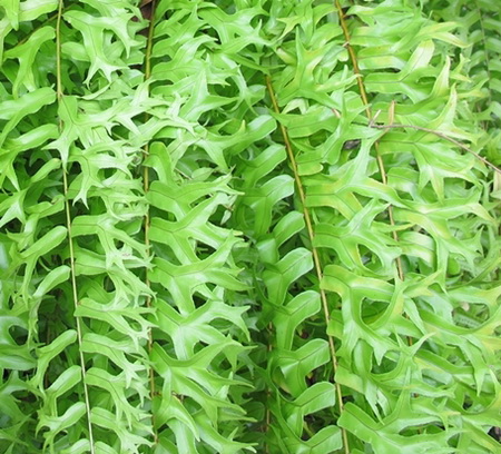 เฟินก้างปลาเป็นอีกหนึ่งพรรณไม้ตระกูลเฟินที่นิยมปลูกห้อยประดับอาคาร ใบรูปหอกแคบประกอบแบบขนนกเรียวยาวย้อยตามความยาวของก้านใบ ชอบแสงรำไร น้ำปานกลาง ปลูกได้ในดินทุกชนิด ขยายพันธุ์ได้ง่าย