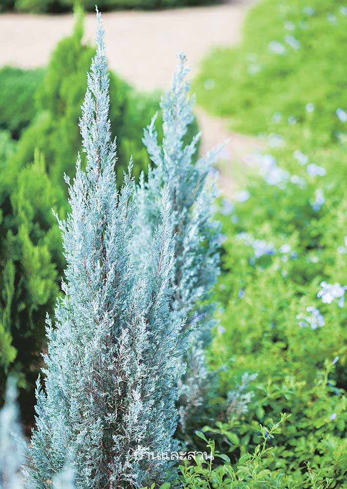 สนบลูเป็นอีกหนึ่งไม้ใบสีเงินที่น่าสนใจ มีใบขนนกสามชั้นเรียวเล็ก สีเขียวปนน้ำเงินเหลือบเทา ดูสว่าง รูปทรงต้นแบนปลายยอดแหลมแตกกิ่งเป็นพุ่มกลม ไม่พลัดใบ สนบลูปลูกเลี้ยงง่าย ชอบแดดมาก นิยมปลูกในกระถางตั้งประดับหน้าบ้านและปลูกเป็นแถวริมรั้ว