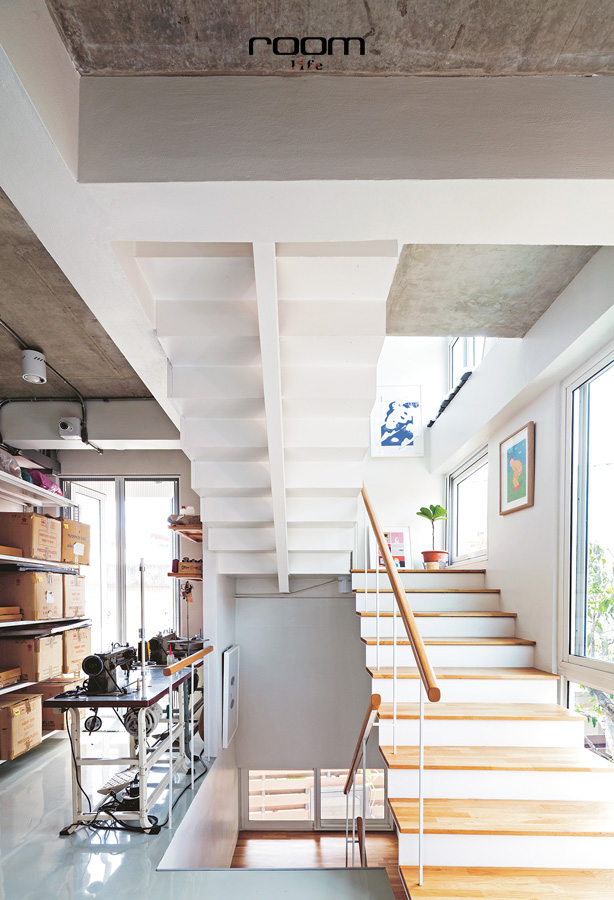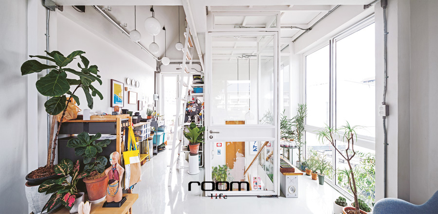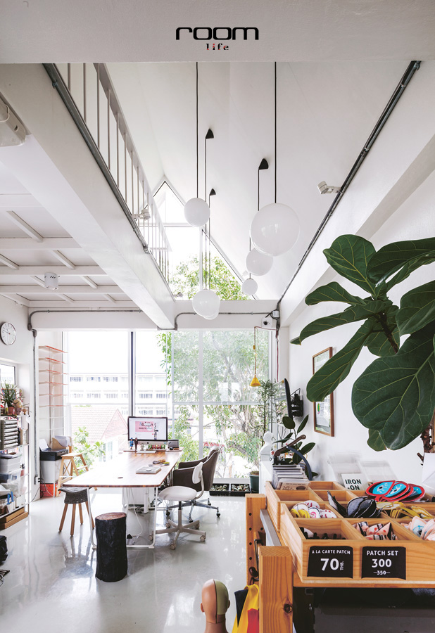 สตูดิโอของกระเป๋าแบรนด์ TA.THA.TA ที่เปลี่ยนโรงจอดรถให้กลายเป็นออฟฟิศทรงผอมสูง ด้วยขนาด 4 x 9 เมตร จำนวน 4 ชั้น โดยมีพื้นที่รวมกัน 300 ตารางเมตร ตั้งแต่เริ่มออกแบบคุณเต้ได้กำหนดฟังก์ชันไว้อย่างชัดเจน ด้วยการกำหนดให้ชั้น1เป็นพื้นที่เก็บสต็อกสินค้า ชั้น2 เป็นพื้นที่สำหรับประกอบและผลิตกระเป๋า และชั้น 3 เป็นสตูดิโอออกแบบ แถมยังมีชั้นลอยสำหรับพักผ่อนและสังสรรค์เตรียมไว้แทนการมีห้องพักอย่างบ้านทั่วไป