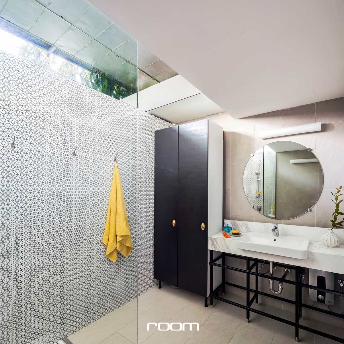 บ้านหลังนี้เกิดจากการรีโนเวตบ้านเก่าจึงมีการปรับเปลี่ยนโครงสร้างของบ้านบางส่วนด้วยการเจาะช่องเปิด และปรับเปลี่ยนหลังคาบางตำแหน่งเพื่อให้แสงธรรมชาติเข้ามาในบ้านได้อย่างเต็มที่ รวมไปถึงเจาะพื้นบริเวณชั้น 2 และ 3 บางส่วนให้เกิดดับเบิ้ลสเปชช่วยลดความอึดอัดและเพิ่มการระบายความร้อนของบ้านให้ดียิ่งขึ้น