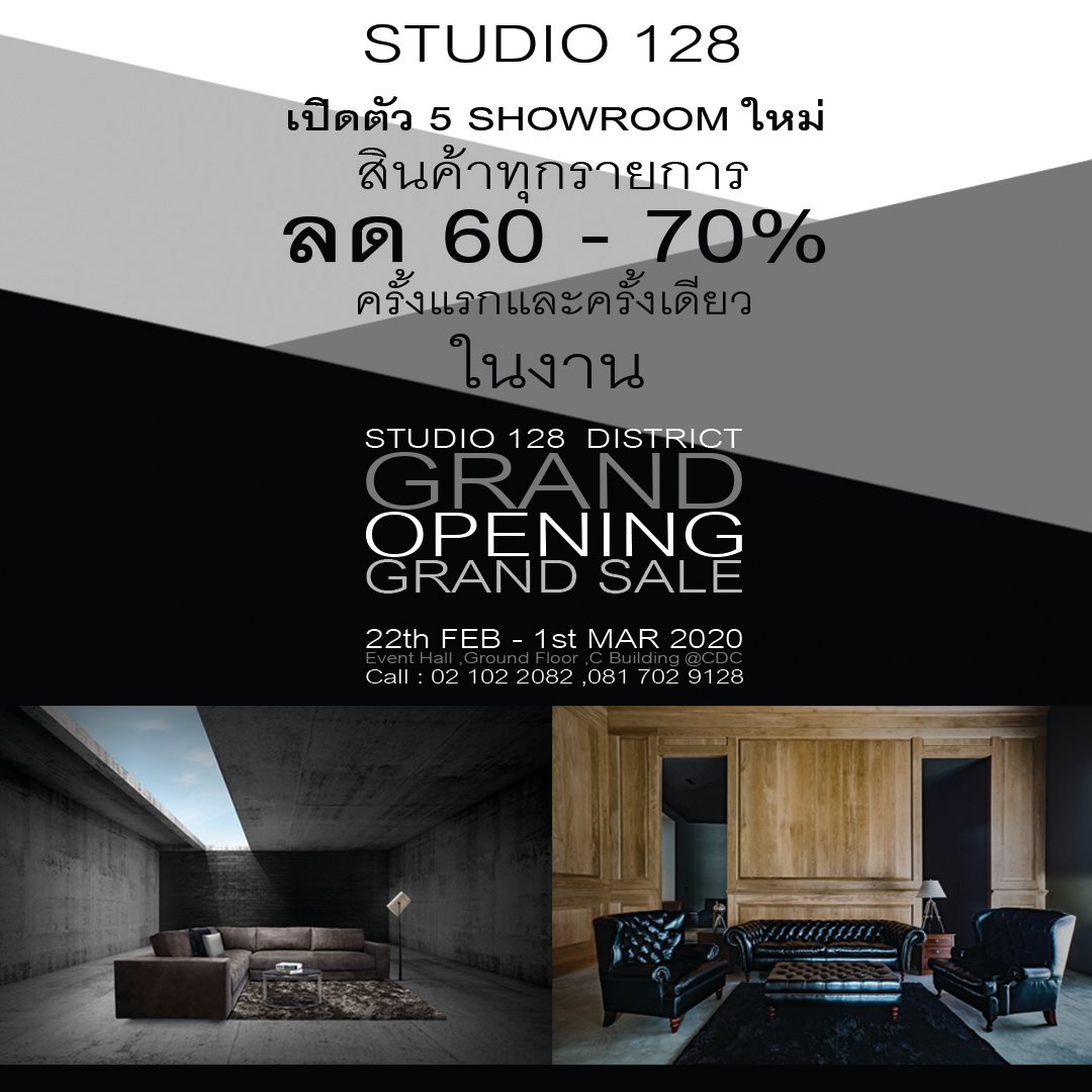 STUDIO128 เปิดตัว 5 โชว์รูมใหม่ สินค้าทุกรายการ ลด 60-70 % ในงาน ” STUDIO 128 DISTRICT GRAND OPENING GRAND SALE ” 22 กุมภาพันธ์ – 1 มีนาคม นี้ ที่ CDC อาคาร C