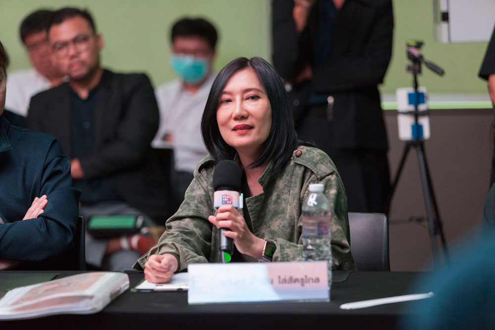 รศ.ดร.น้ำฝน ไล่สัตรูไกล: “การนำขยะรีไซเคิลมาผลิตเป็นงานคราฟต์ ถือเป็นเรื่องที่ยาก เป็น painpoint ของหลาย ๆ คน กับโจทย์การทำขยะให้ไม่เป็นขยะ หลายคนบอกว่าลองจ้างคนทำมีเดียหรือไปจ้างบล็อกเกอร์ สิ ซึ่งเป็นสิ่งที่ชาวบ้านทำเองไม่ได้ เเต่ดิฉันกลับมองว่าไม่จำเป็นเท่ากับการที่เราพยายามสร้างแนวคิดตรงนี้ร่วมกันให้แข็งแรงก่อน พอทุกคนมีแนวคิดตรงกันจะเกิดพลังที่จะพาให้ทั้งระบบเดินไปพร้อมกัน แต่อีกด้านหนึ่งเมื่อมองในมุมคราฟต์ ความพิถีพิถัน ความสวยงาม และใช้งานได้ดีถือเป็นเรื่องสำคัญ เพราะจะทำให้สินค้ามีราคา แต่อาจจะรองรับการผลิตแค่เพียงจำนวนน้อย ถ้าเราสามารถผลิตได้ 5 ชิ้นในช่วงเวลาหนึ่ง แล้วตลาดต้องการถึง 100 ชิ้น เราต้องตอบคำถามตรงนี้ให้ได้ด้วย ให้สิ่งที่เรากำลังจะสร้างขึ้นมานั้น สามารถเข้าถึงคนหมู่มากได้ ถ้าทำยาก ผลิตได้น้อย ก็เล็งเป้าที่กลุ่มลูกค้ากลุ่มไฮเอนด์ แต่ถ้าทำให้เข้าถึงง่ายลงมา ผลิตได้มากก็จะสามารถเข้าถึงลูกค้าชั้นกลางได้ ผลิตภัณฑ์เหล่านั้นจะได้ไปทำหน้าที่เป็นกระบอกเสียงให้กับแนวคิด Circular Economy ต่อไป”
