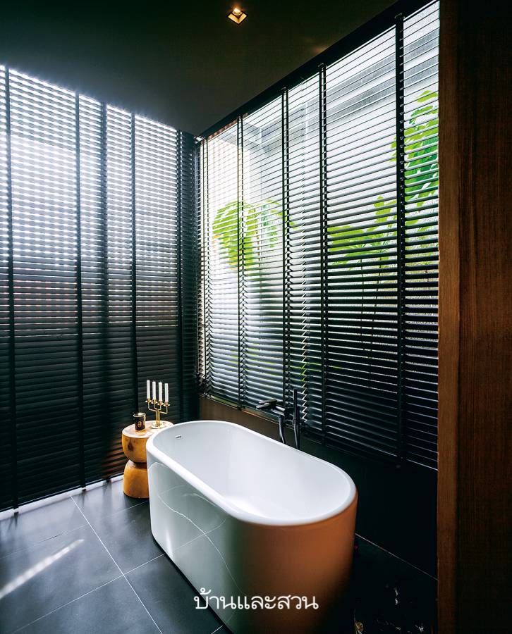 ใช้ในส่วนของห้องน้ำที่ปรับให้สามารถสร้างความเป็นส่วนตัว หรือจะเปิดมองพื้นที่สีเขียวโดยรอบได้ตามแต่โอกาส