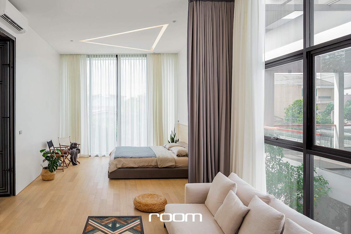 ออกแบบฝ้าให้สามารถซ่อนรางม่านได้ เข้ากันดีกับบ้านแบบโมเดิร์น ดูเนี้ยบ เรียบร้อย