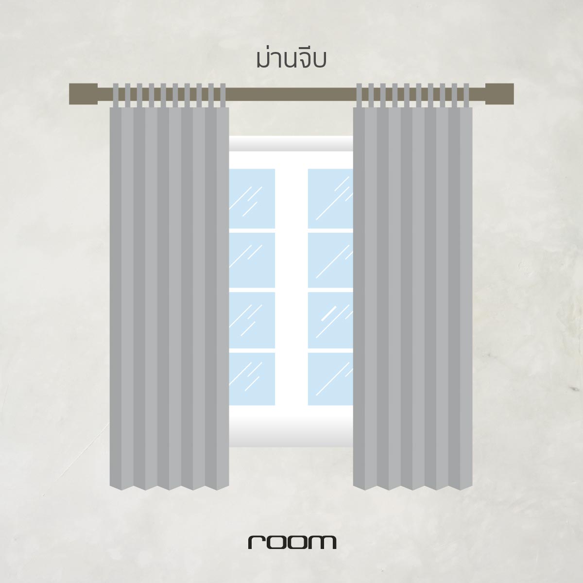 Tip : แนะนำให้ใช้ม่านชนิดนี้กับหน้าต่างบานแคบ หรือหน้าต่างบานเล็กที่ติดกันหลาย ๆ บาน จะทำให้ห้องดูดีมีสไตล์